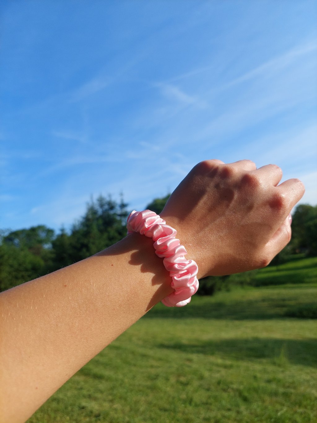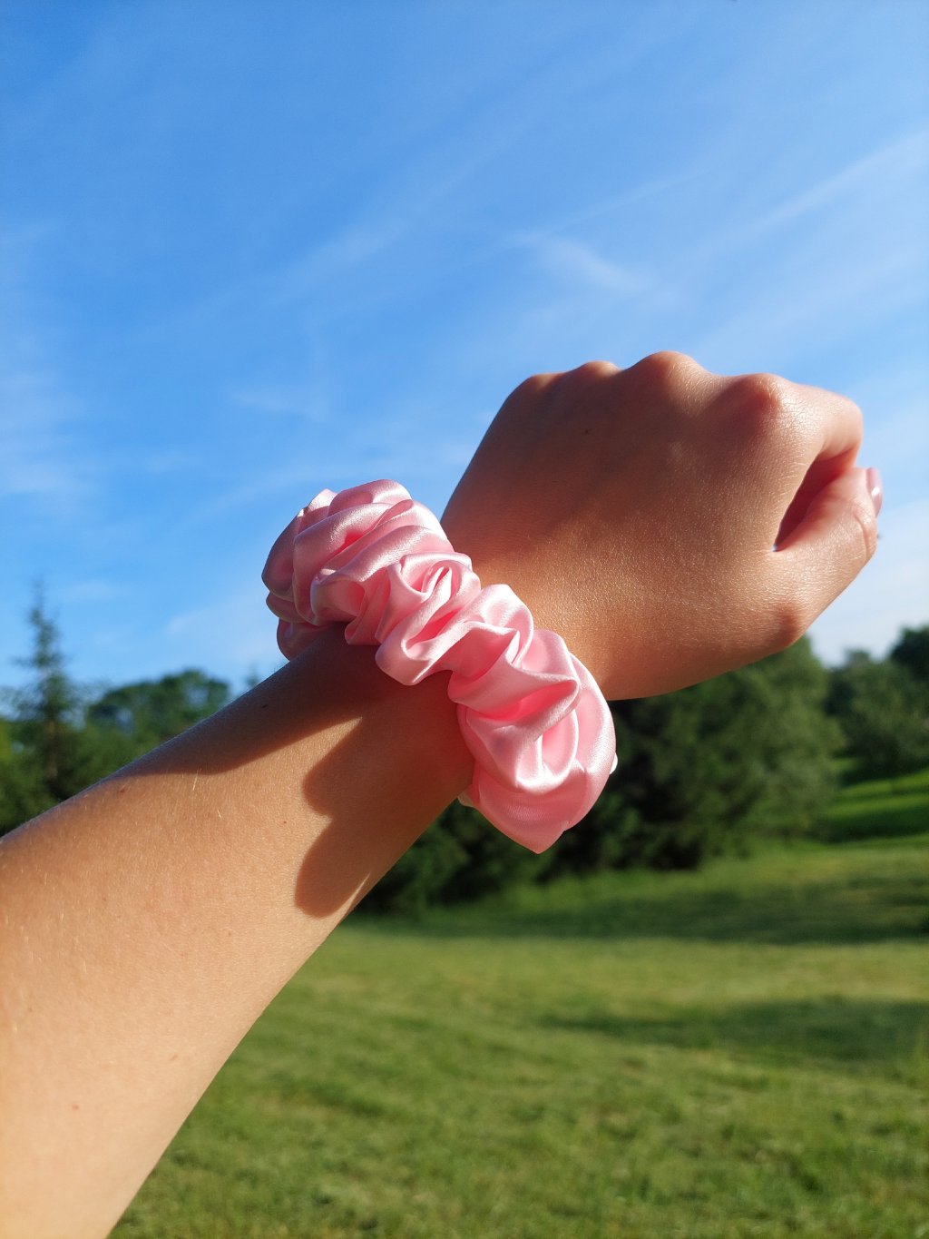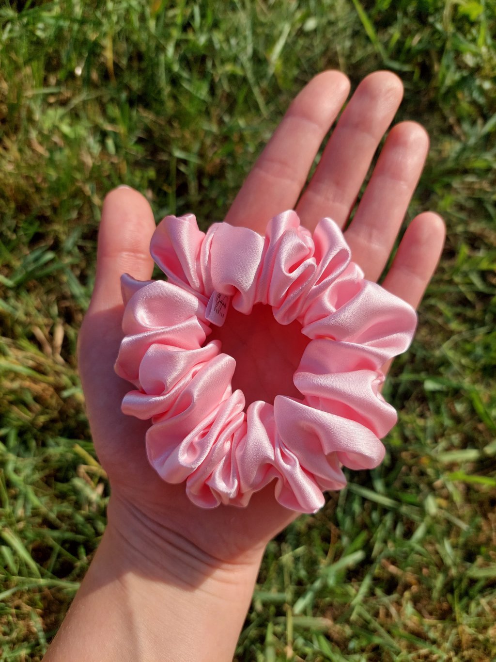 Baby růžová hedvábná scrunchie gumička