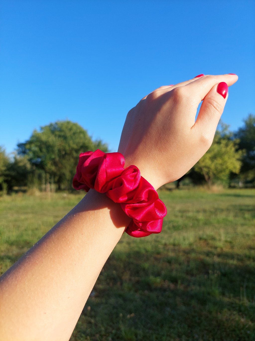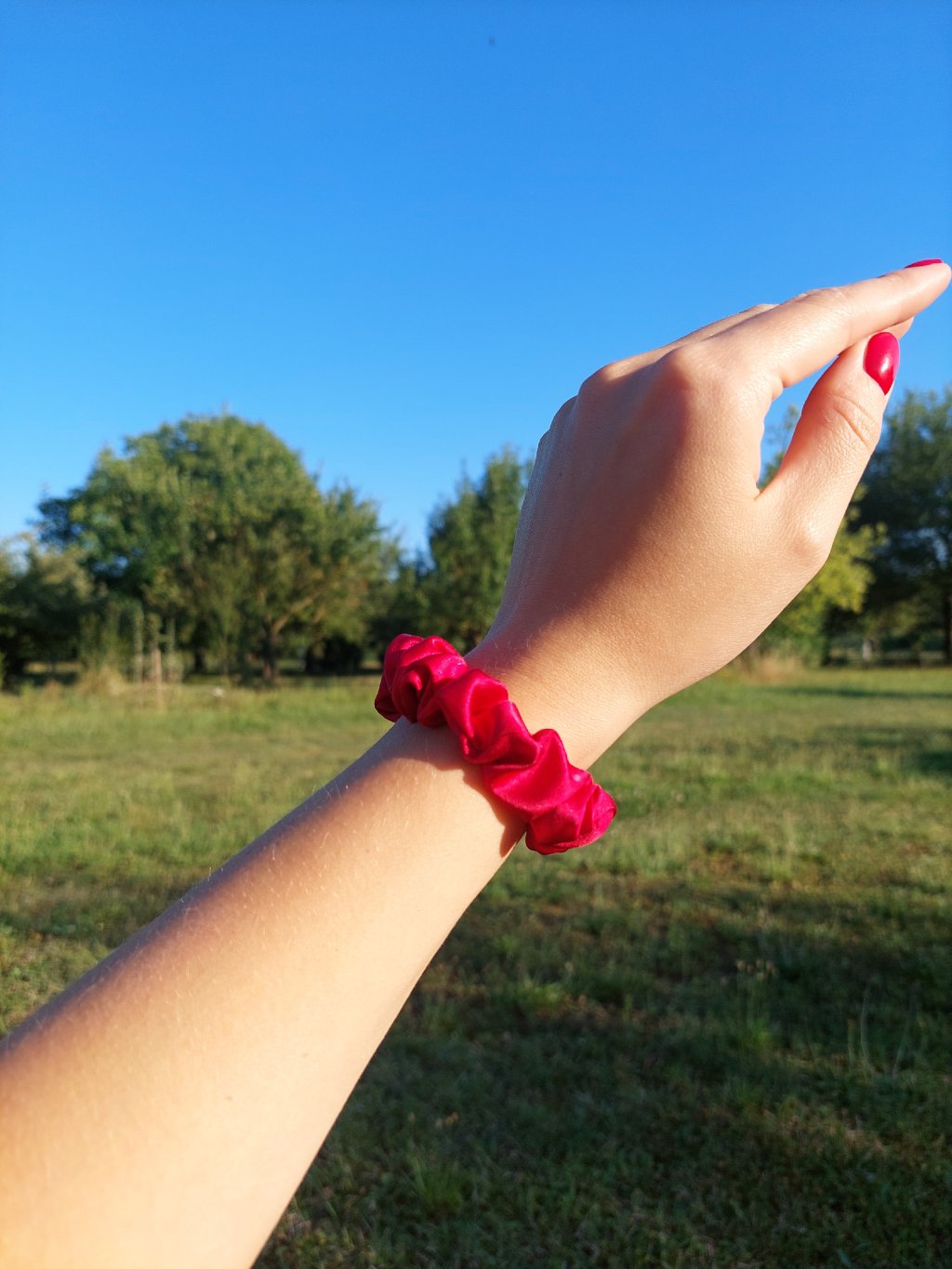 Malinová hedvábná scrunchie gumička