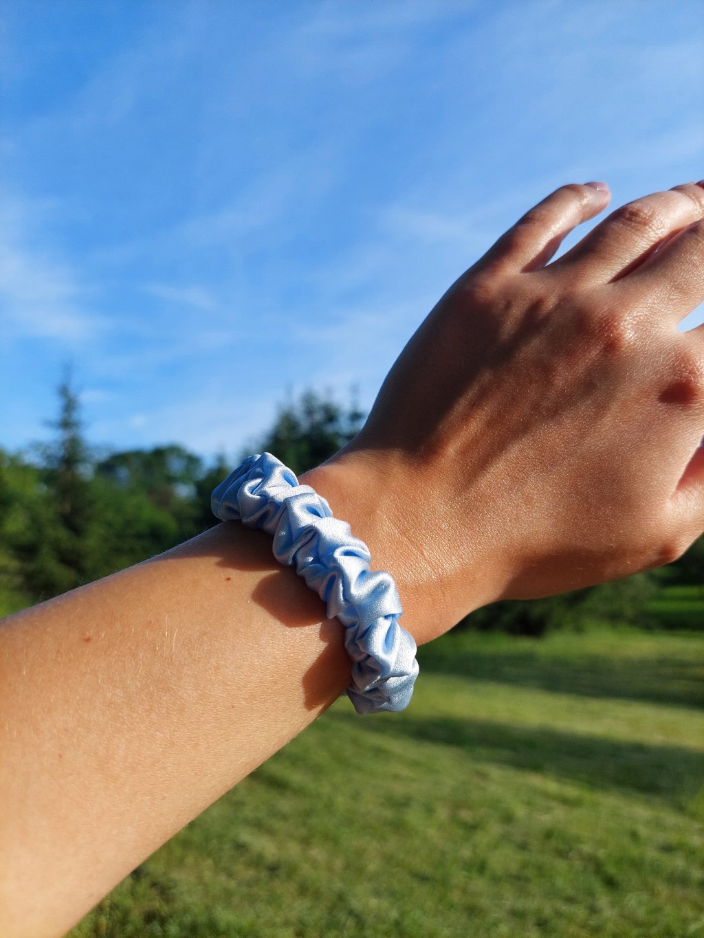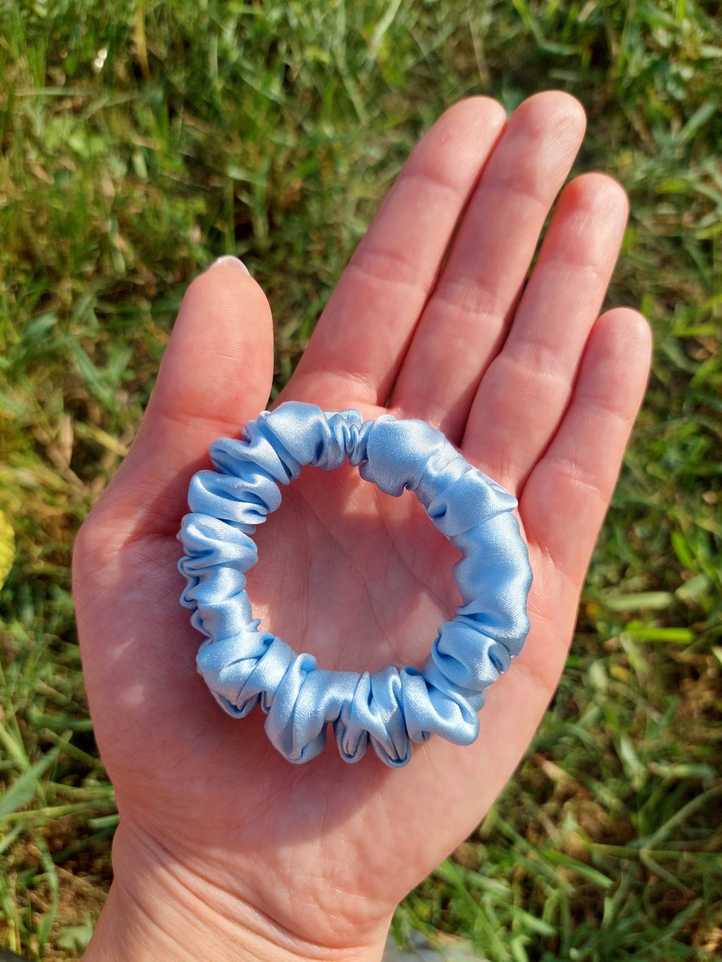 Pomněnková hedvábná scrunchie gumička