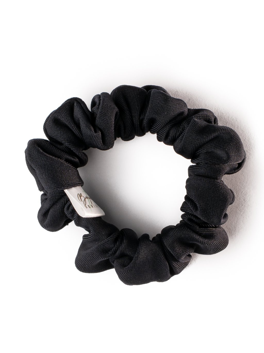 Sportovní scrunchie gumička v černé barvě ušitá z kvalitní italské plavkoviny s matným vzhledem je ideální volbou pro aktivní dny – do vody, na sport i běžné nošení. Látka je elastická, rychleschnoucí, příjemná na dotek a díky vláknu Lycra® Xtra Life si dlouhodobě drží svůj tvar, nevytahuje se a je odolná vůči chlóru i žmolkování.