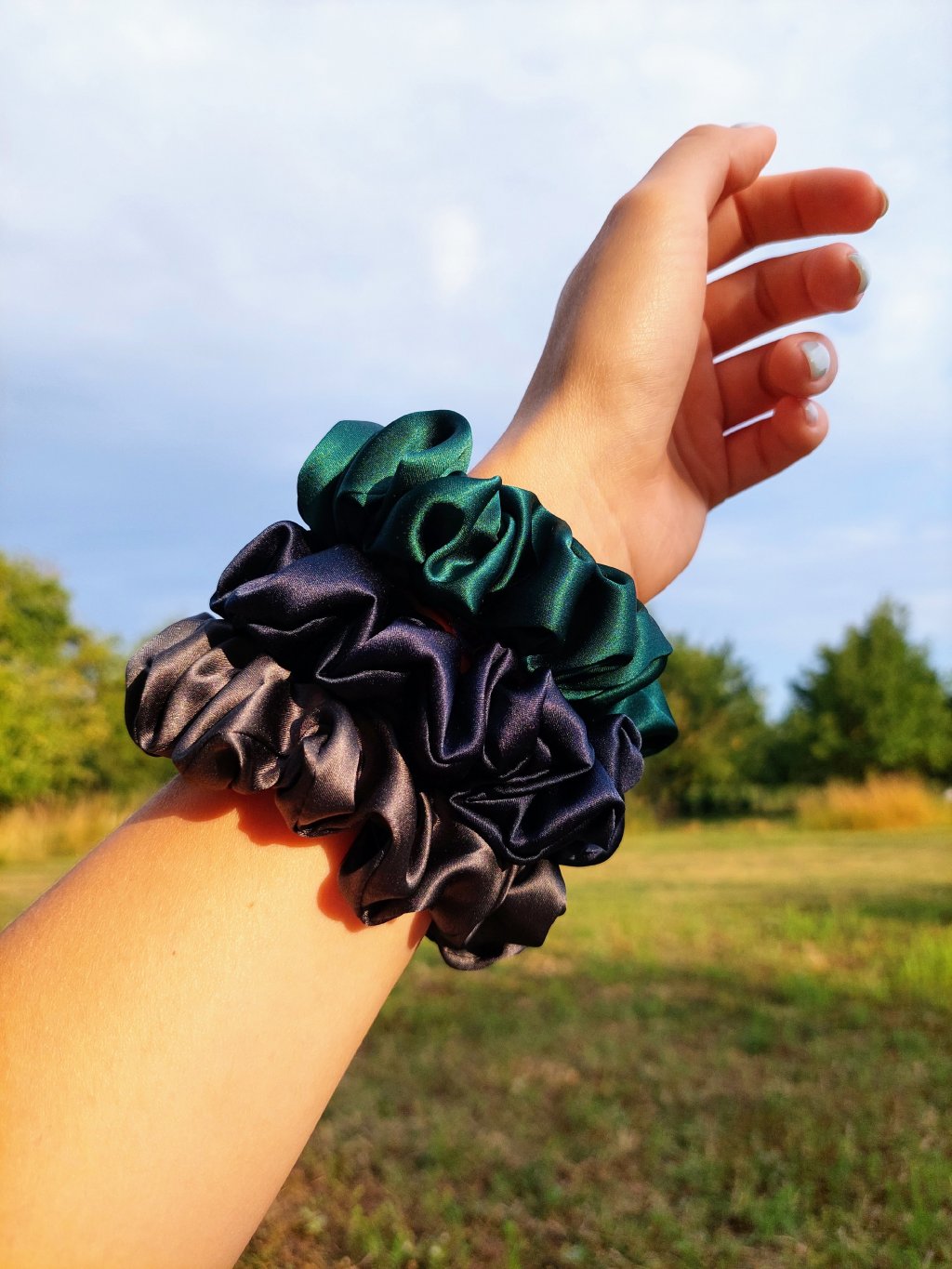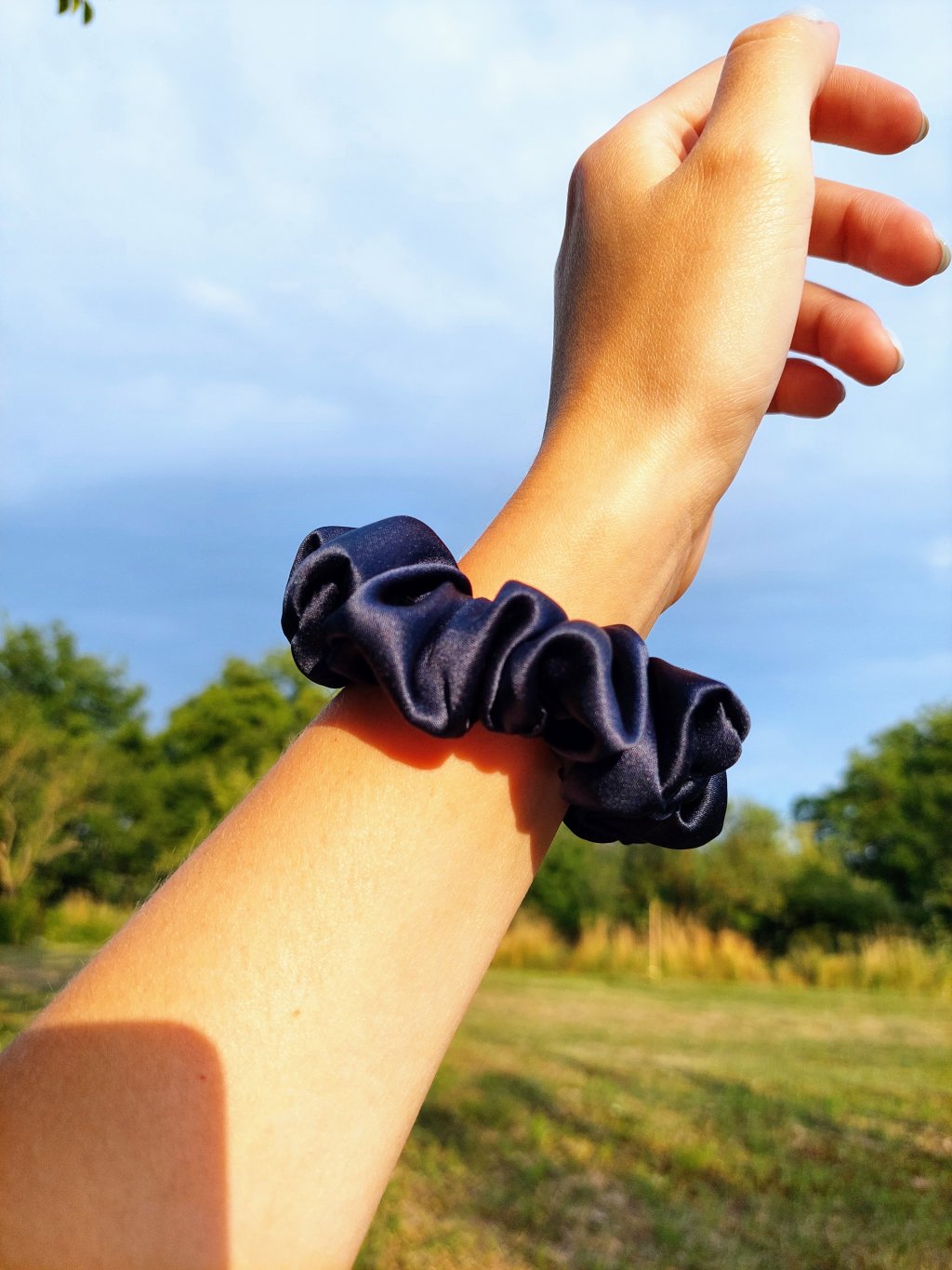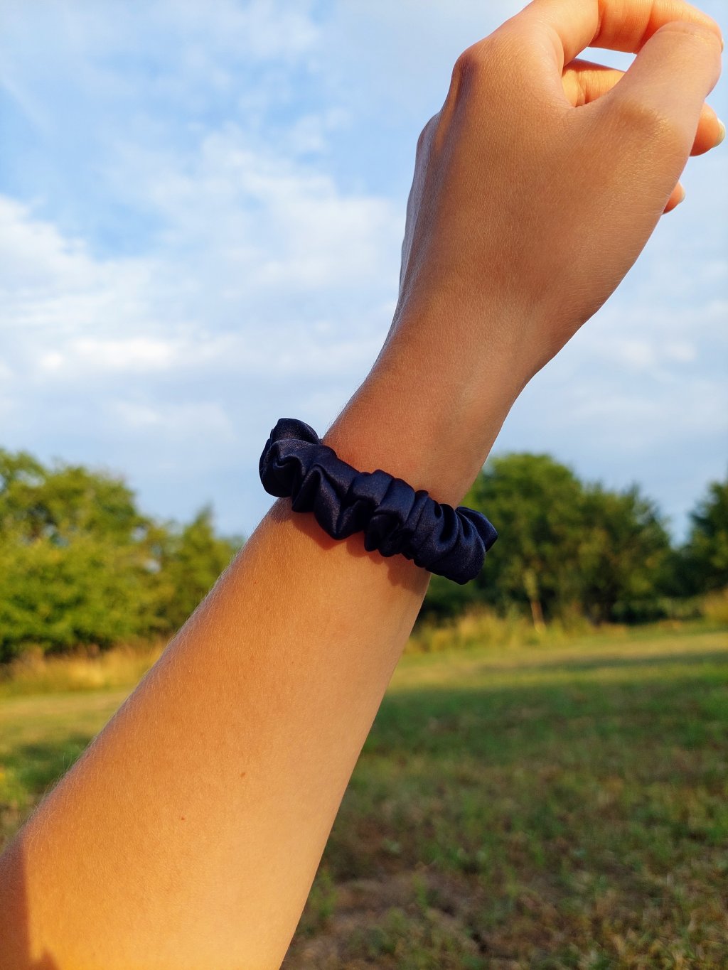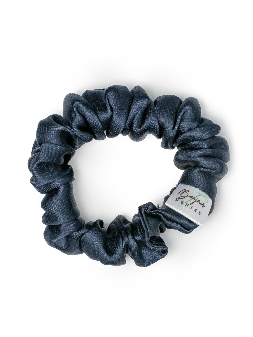 Tmavě modrá hedvábná scrunchie gumička